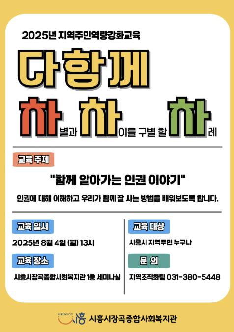 김소연 시흥시 복지정책과장은 “이번 교육을 통해 나와 이웃의 권리를 올바르게 인식하고, 타인을 존중하는 공동체 문화를 확산하는 기회가 되길 기대한다”라고 말했다.