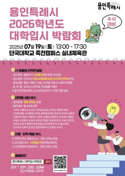 이상일 시장은 “혼란스러운 입시 제도 속에서도 학생들이 자신에게 가장 적합한 길을 찾을 수 있도록 시가 적극 지원하겠다”며 “학생들이 미래를 꿈꾸고 도전할 수 있는 환경 조성을 위해 다양한 맞춤형 교육 프로그램과 상담 서비스를 확대해 나가겠다”고 말했다.