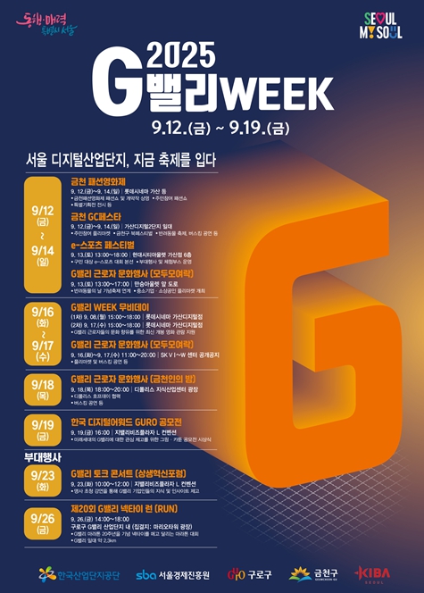 서울시는 오는 9월 12일부터 19일까지 8일간 G밸리 일대에서 '2025년 G밸리 WEEK'를 개최한다고 밝혔다.