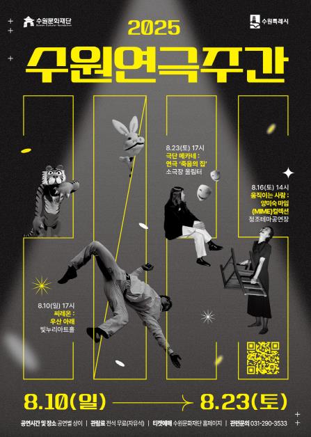 ‘수원연극주간’은 지역 극단과의 협업을 통해 수원 공연예술의 가치를 조명하고, 시민들의 연극문화에 대한 관심을 높이고자 기획된 프로그램이다. 올해는 총 5편의 작품이 소개되며, 이 중 3편은 공연장에서 시민들과 만나고, 2편은 ‘수원시어린이집연합회’와 협력한 찾아가는 공연으로 진행된다.