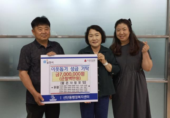 이계향 선단동장은 “꾸준한 이웃 사랑을 실천해 주시는 좋은사람모임에 감사의 말씀을 전한다. 성금은 꼭 필요한 이웃에게 잘 전달하겠다”고 말했다.