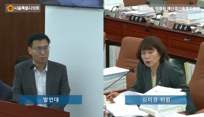 또한 성과가 낮은 사업에 추경이 계속 반영되는 관행에 대해서도 문제 제기를 이어갔다. 심 의원은 “취업지원센터 사업의 성과가 계속 미흡으로 나오고 있는데도 2025년 추경에 또 올라왔다”고 지적하며, “성과가 미흡한 사업에 추경을 올리는 것은 예산, 결산과 성과평가 시스템 불신을 집행부가 자초하는 꼴”이라고 꼬집었다.