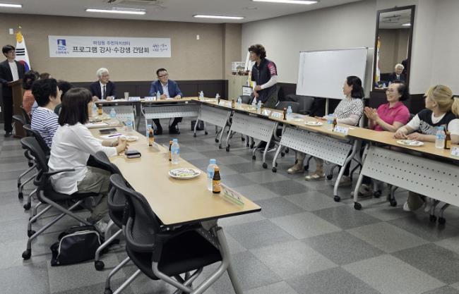 이날 행사에는 노래교실과 트로트댄스, 통기타교실 등 다양한 분야의 강사들과 수강생 10여명이 참석해 프로그램 운영 전반에 대한 의견을 자유롭게 나눴다.