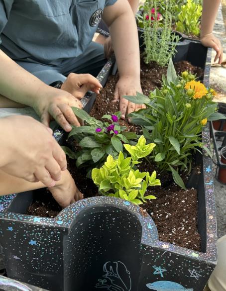 '나만의 업사이클링 화분 DIY'은 광교2동 주민자치회 활성화 사업인 '새삶스런 화분'과 연계하여 폐비닐로 만든 화분을 고학년(4~6학년)이 꾸미고, 저학년(1~3학년)이 식재했다.