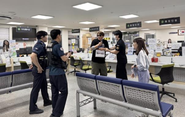 행정복지센터 전 직원과 인창지구대 경찰관이 참여한 이번 훈련은 특이 민원인이 민원 처리에 불만을 제기하며 고성을 지르고 위협하는 상황을 가정하여, 비상벨 작동, 초동 대응, 인창지구대 협조 요청, 민원인과 직원 대피 유도 등의 절차를 실제 상황처럼 진행했다.