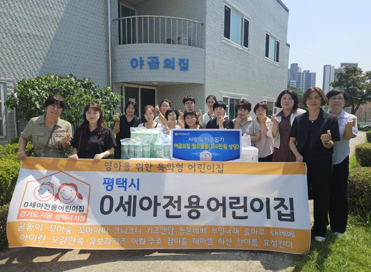 전달식에 참석한 평택시 0세아 전용 어린이집 원장 일동은 “기관에 거주하는 아이들이 밝고 건강하게 자라기를 바라는 마음으로 준비했다”라며, “실제 필요 물품을 마련했기에 더욱 의미 있는 나눔이었다”라고 전했다. 이어 “평택시 19곳 지정된 0세아 전용 어린이집들의 따뜻한 마음이 모여 더욱 뜻깊은 시간이 됐다”라고 덧붙였다.