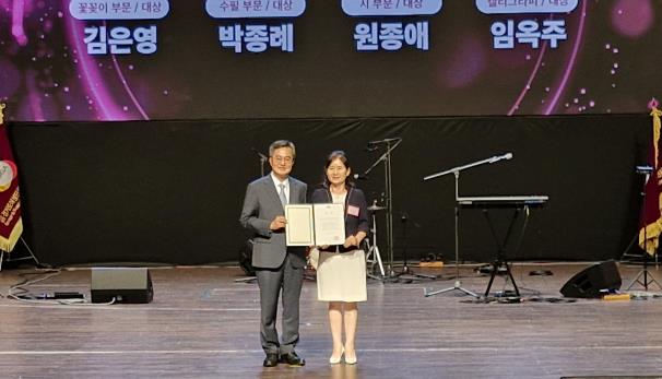 캘리그라피 대상을 수상한 임옥주(구리 늘푸른 봉사회장)은 2000년 7월에 서예 부문에서 수상한 바 있으며, 2021년부터 캘리그라피 교육과정을 통해 완성한 이번 작품 ‘나누는 돌봄 함께하는 일터 그곳에 진짜 평등이 있습니다’라는 단순한 예술 작품을 넘어 양성평등의 중요성을 강조하는 강력한 메시지를 담고 있다.