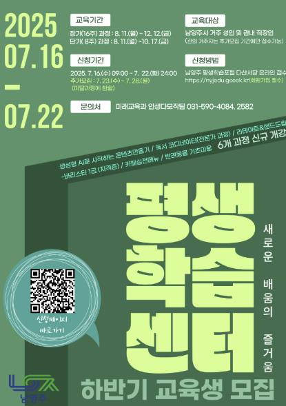 최진희 미래교육과장은 “시민들이 새로운 기회를 찾고 배움의 즐거움을 느끼도록 트렌디하고 실용적인 과정을 준비했다”며 “시민 여러분의 많은 참여 바란다”고 밝혔다.