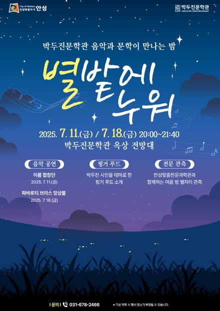 시 관계자는 “지역 문화시설에서 여름밤 문학적 감성을 느끼고 시원한 공연을 통해 활력을 얻는 시간이 되길 바라며, 앞으로도 시민들과 함께할 수 있는 문학관이 되기 위해 노력하겠다.”고 말했다.