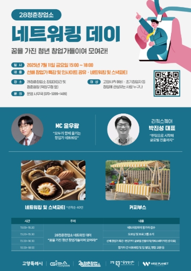 네트워킹 데이 참여를 원하는 청년은 오는 9일 오후 17시까지 홍보 포스터 내 QR 코드로 접속해 신청하면 된다.