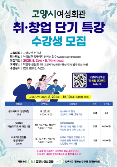 모집 기간은 8월 7일부터 14일까지이며, 교육은 8월 20일부터 12월 10일까지 강좌별 일정에 따라 대면 방식으로 운영된다.