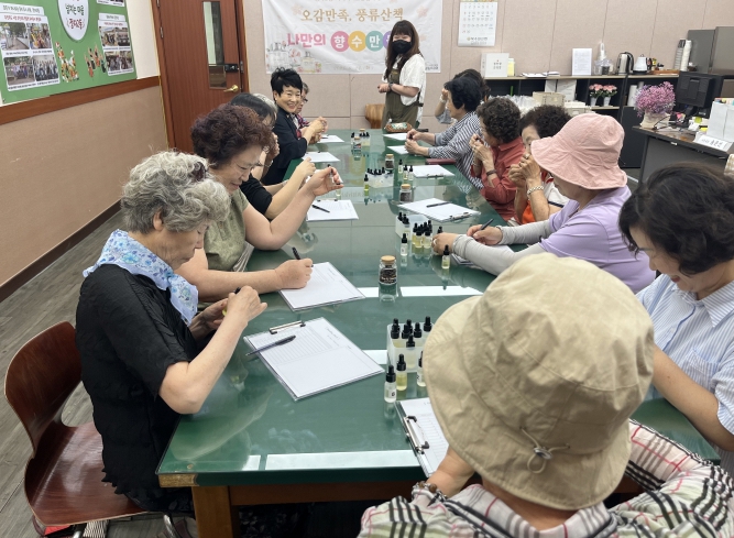 이날 세 번째 만남에서는 ‘기억과 감정을 연결하는 나만의 향수 만들기’ 교육이 진행됐으며, 참여자들은 서로에게 어울리는 향기를 찾아주며 유대감을 높이고 긍정적 자기상 확립에 도움이 될 ‘나만의 향수’를 만드는 체험을 이어갔다.