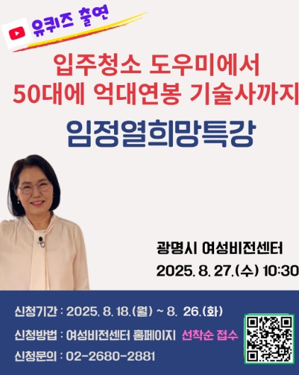 한편, 광명시 여성비전센터는 정규교육 외에도 단기특강, 야간 과정 등 다양한 취·창업·자격증 프로그램을 운영하며, 앞으로도 시민 개개인의 도전과 변화를 응원하는 평생학습의 든든한 동반자로서의 역할을 지속할 예정이다.