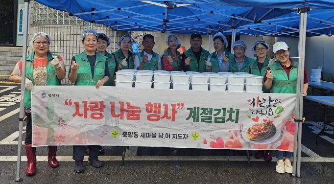 이번 행사는 무더운 여름철을 맞아 지역의 홀몸노인 등 소외된 이웃에게 건강한 먹거리를 나누고자 마련됐으며, 중앙동 새마을남녀회 회원들이 정성껏 담근 사랑의 물김치 100통을 지역 내 소외계층 가구에 전달했다.