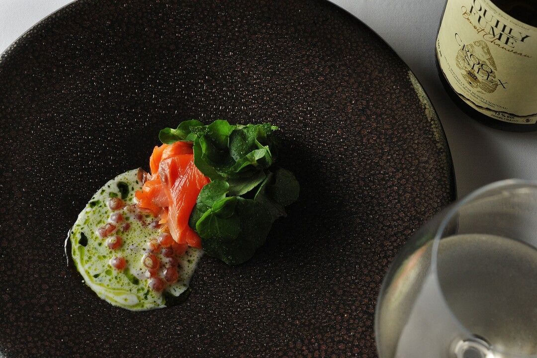 이번 가을 한정 메뉴는 테라스석에서 즐기는 아페리티프로 시작해 비단 그림처럼 물든 단풍과 계류의 물소리를 배경으로 만끽하는 아오모리다운 디너 코스다.