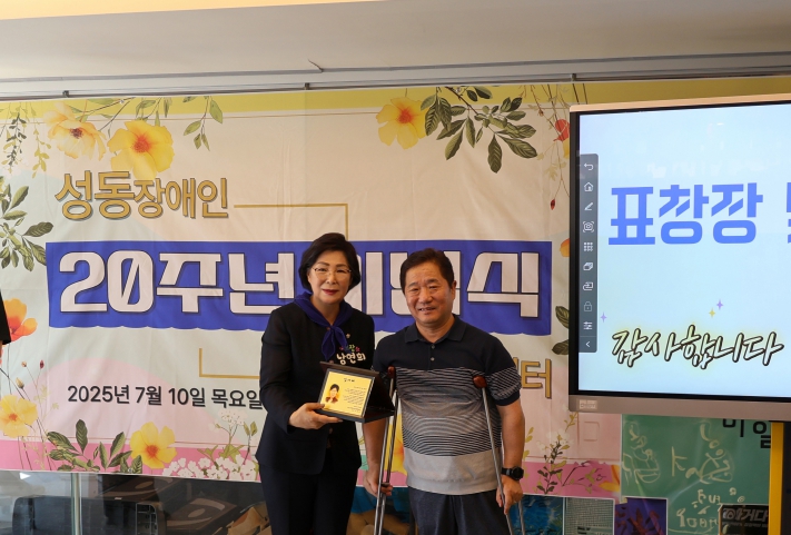 감사패를 받은 남 의장은 “성동장애인자립생활센터가 걸어온 지난 20년은 그 자체로 매우 뜻깊다. 장애인의 자립을 위해 애써 온 모든 분들께 진심으로 감사드린다”고 소감을 전했다. 이어 “앞으로도 성동구의회는 장애인이 사회에서 당당히 살아갈 수 있도록 제도적 기반 마련에 최선을 다하겠다”고 덧붙였다.