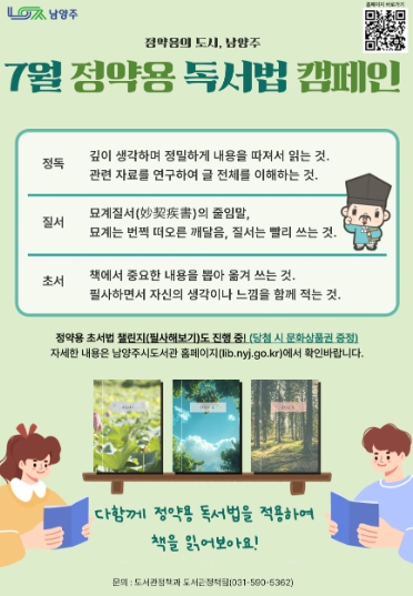 시 관계자는 “정약용 선생의 실천적 독서 철학을 현대인이 일상에서 쉽게 실천할 수 있도록 다양한 프로그램을 마련했다”며 “이번 캠페인을 통해 정약용식 독서문화가 지역사회 전반으로 확산되길 기대한다”고 말했다.