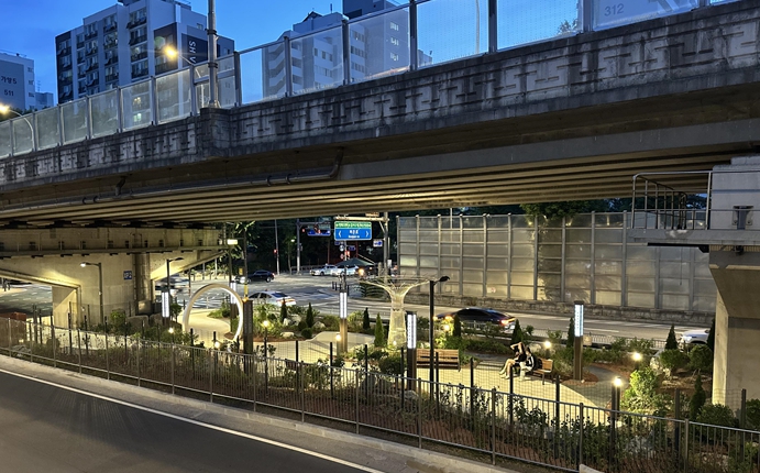 석계역 고가 하부는 단절되고 소외됐던 공간에 다양한 자연형 조형물과 소나무 정원, 아름다운 경관조명을 설치해 매력적인 문화 휴식 공간으로 재창조했다.