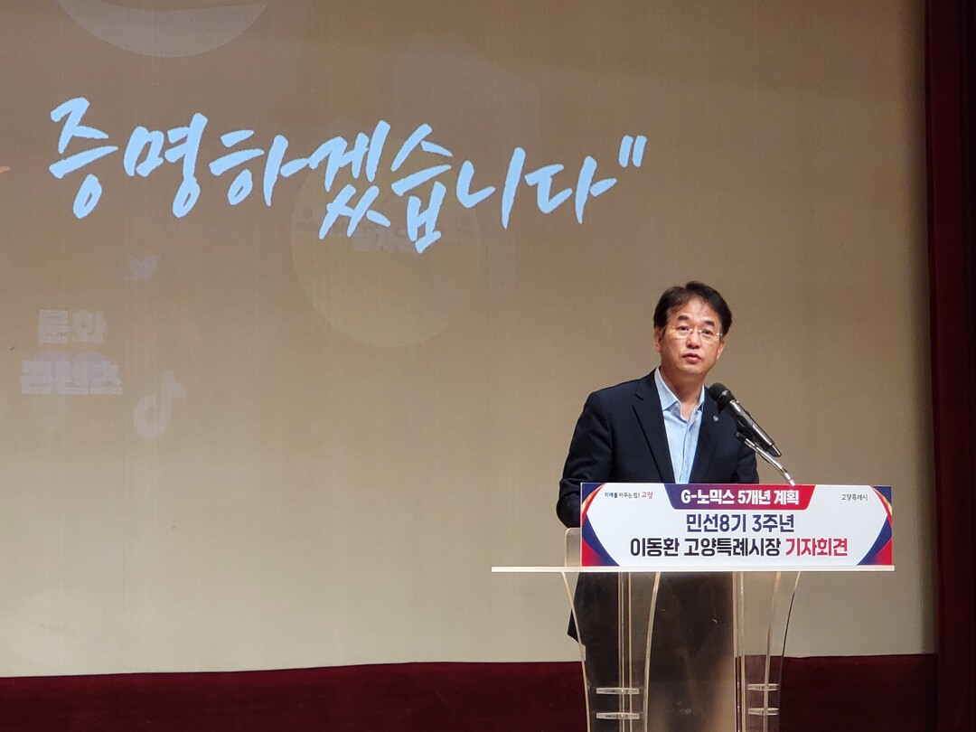이동환 고양특례시장은 민선8기 3주년 기자회견에서 'G-노믹스 5개년 계획'을 발표하며 산업 중심 도시로의 전환을 본격 선언했다.