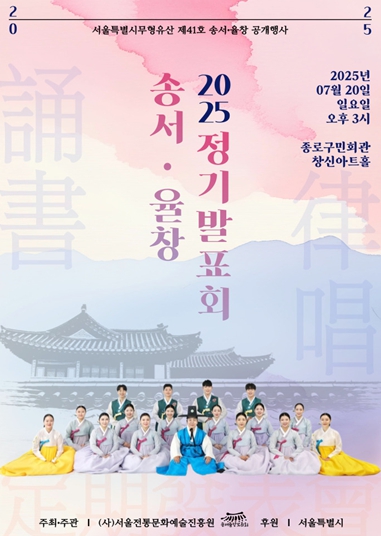 먼저 오는 7월 20일 오후 3시, 종로구민회관에서 '송서(誦書)'공개행사를 개최한다. 송서는 옛 선비들이 문학 작품에 음률을 넣어 멋스럽게 읽어내며 사대부의 교양을 뽐내던 독특한 서울의 전통 음악이다. 유의호 보유자를 비롯한 이수자, 전수생 등 총 62명이 함께 무대에 올라 송서의 매력을 선보인다.