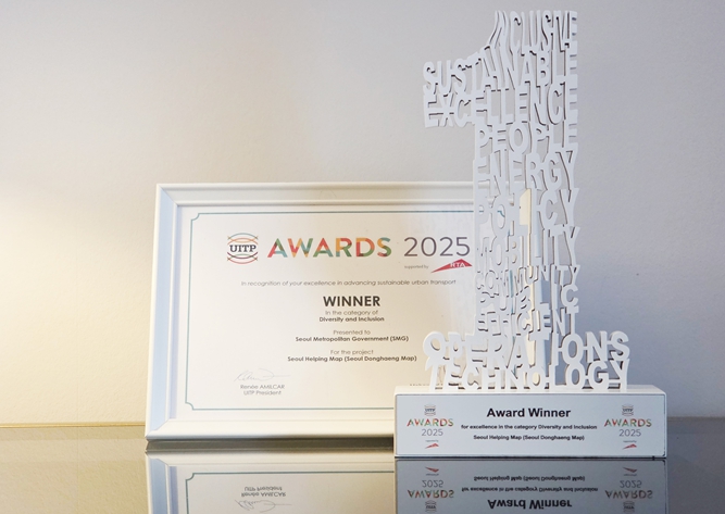 UITP 어워즈는 2011년 시작, 2년마다 전 세계 가장 혁신적인 대중교통 정책 및 사업을 선정하는 시상식으로, 올해 제8회를 맞이했다. 이중 서울동행맵은 교통약자의 이동 편의 개선을 위한 노력을 인정받아 다양성 및 포용성 부문에서 수상했다.