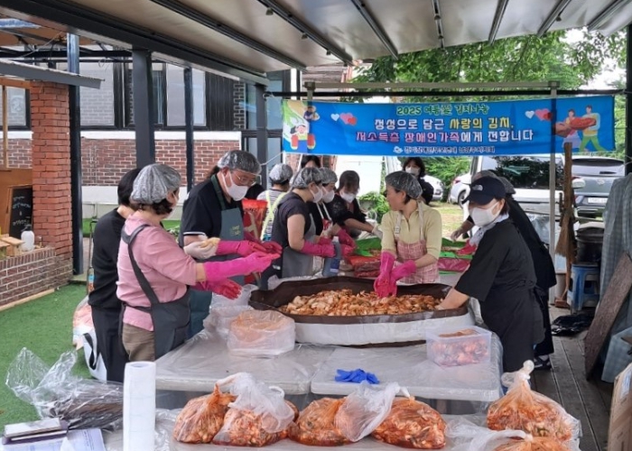 참여자들은 배추 절이기부터 양념 만들기, 포장에 이르기까지 전 과정을 직접 진행해 여름김치 5kg 70통을 완성했으며, 완성된 김치는 관내 저소득 장애인가정 70가구에 전달됐다.