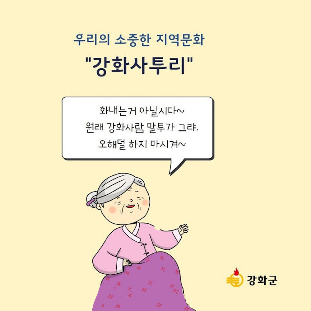 알다시피 제주도 사투리는 일반인이 거의 알아듣지 못하는 수준이다. 강화도 사투리도 이와 유사하다고 할 수 있다.