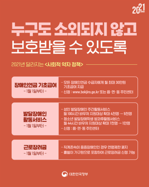 - 모든 장애인연금 수급자에게 월 최대 30만원 지급