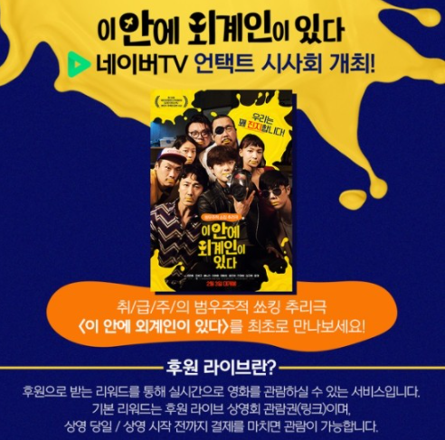 이번 '이 안에 외계인이 있다' 네이버TV 언택트 시사회는 코로나19로 진행이 어려워진 오프라인 시사회를 대체하여 관객들에게 안전하게 영화를 관람할 수 있는 기회를 제공하는 이벤트다.