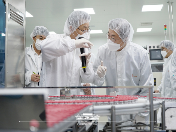 이후 대통령은 가스 크로마토그라피·함량분석기 등의 장비를 활용한 원액 성분분석 등 백신 품질 검사과정이 이뤄지고 있는 QC(Quality control, 품질관리)실험실로 이동했다.