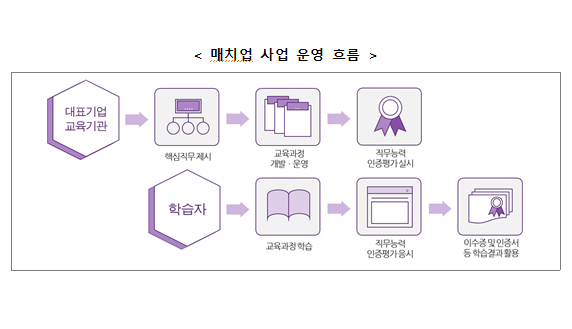 이 사업에 참여하는 대표기업과 교육기관은 신산업분야 인력 양성과 지식 공유를 위해 공동으로 해당 분야 핵심직무에 따른 교육과정과 직무능력 인증평가를 개발·운영하며, 학습자(대학생·구직자·재직자 등)는 정규 교육과정에서 쉽게 찾아볼 수 없는 직무 중심 전문분야를 학습하고, 학습결과를 취업과 연계하거나 교육시간으로 인정받을 수 있다.