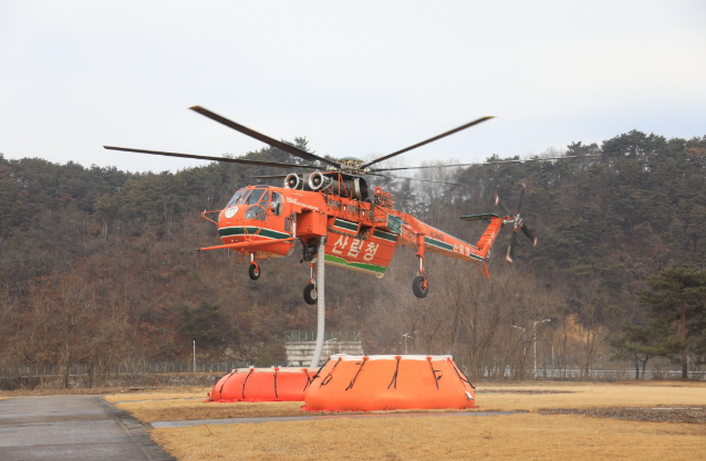 안동산림항공관리소는 산림청 초대형헬기(S-64E) 1대, 대형헬기(KA-32T) 1대를 투입해 훈련을 진행했다. 훈련 간 사용된 이동식 저수조는 2만 2천 리터와 추가로 설치된 이동식 저수조로부터 4만 리터를 확보할 수 있어 실제 산불 현장에서 담수지 거리가 멀거나 겨울철 담수지 동결로 인해 담수가 어려운 경우 진화용수를 공급할 수 있다. 또한 산불확산 지연제 등을 활용할 수 있는 장점이 있어 실제 산불진화 현장에서 효율적으로 사용이 가능하다.