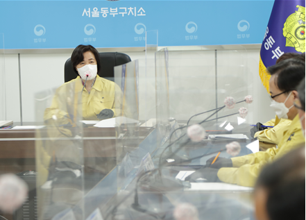 '1월 20일과 23일에 실시한 제11차·12차 전수검사에서 수용자 전원이 음성 판정을 받아 구치소 내 코로나19 상황이 안정화 단계에 접어들고 있다’는 보고에, 추미애 장관은 마음의 짐을 조금이나마 덜게 되어 다행이라면서 어려움 속에서도 감염 확산 방지를 위해 묵묵히 소임을 다해준 직원들의 노고에 감사의 뜻을 전했다.