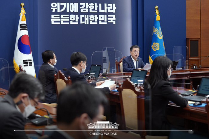 대통령은 "최근 코로나 확산세가 다소 완화되는 가운데 백신 접종이 초읽기에 들어갔고, 국산 치료제도 조건부 허가를 받아 사용에 들어갔지만 완전한 일상 회복의 길은 멀고도 험하기만 하다"고 말문을 열었다.