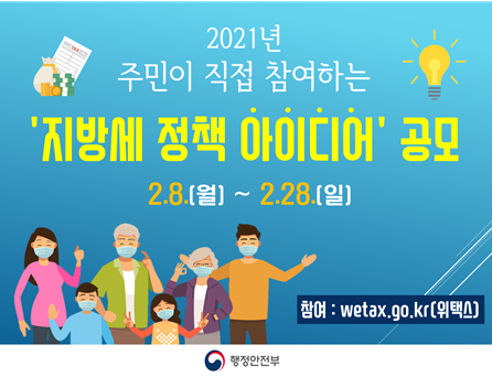 행정안전부는 이번 공모를 시작으로 주민, 자치단체, 관계부처, 유관기관, 학계 등의 다양한 제안을 수렴하고 내‧외부 논의를 거쳐 「2021년 지방세제 개편안」 을 마련하고자 한다.