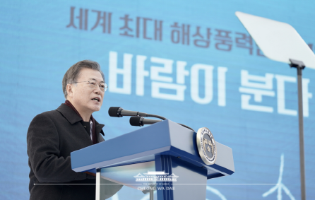 문재인 대통령은 축사를 통해 "코로나로 지친 국민들께 반가운 소식을 전해드리게 되어 매우 기쁘다"며 "여기서 생산되는 8.2GW의 전기는 한국형 신형 원전 여섯 기의 발전량에 해당하고, 서울과 인천의 모든 가정이 사용할 수 있는 엄청난 양"이라고 설명했다.