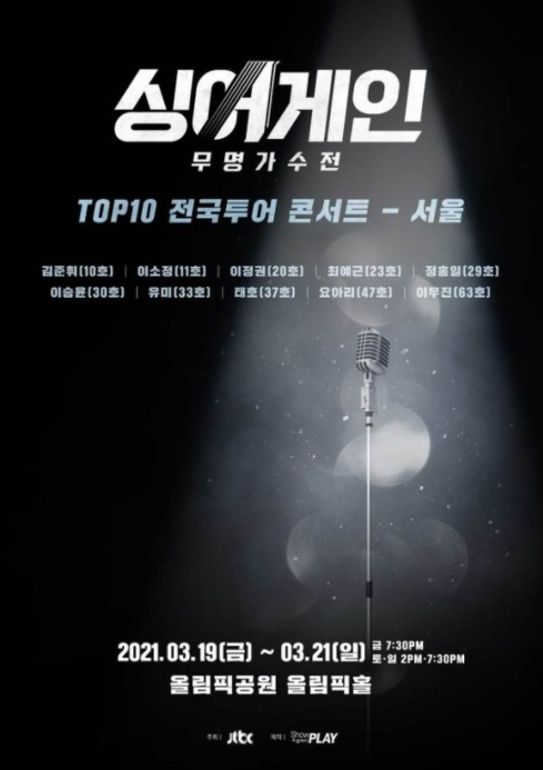 15일 제작사 쇼플레이에 따르면, 이날 오후 2시에 오픈된 '싱어게인' 톱10 서울 콘서트 티켓 예매는 10분 만에 전회 전석 모두 매진됐다.