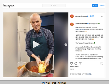 지난 2월 4일 김치 담그는 사진과 영상을 공개한 아이너 옌센(Einar Hebogård Jensen) 주한 덴마크 대사는 “김치소는 매우니 눈에 들어가지 않게 조심해야 한다.”라면서도 “김치 맛을 좋아해 일주일 뒤가 벌써부터 기다려진다.”라고 기대감을 숨기지 않았다. 옌센 대사는 누리꾼들에게 김치와 잘 어울리는 ‘꿀조합’ 음식을 추천해 달라고 썼다. 주한 덴마크 대사관의 페이스북, 트위터, 인스타그램, 블로그에는 한국, 덴마크, 캐나다 등 다양한 국적의 누리꾼들이 보쌈, 플레스케스텍(Fløskesteg, 덴마크 전통 돼지고기 요리), 고구마, 두부 등을 김치와 어울리는 음식으로 추천했다.