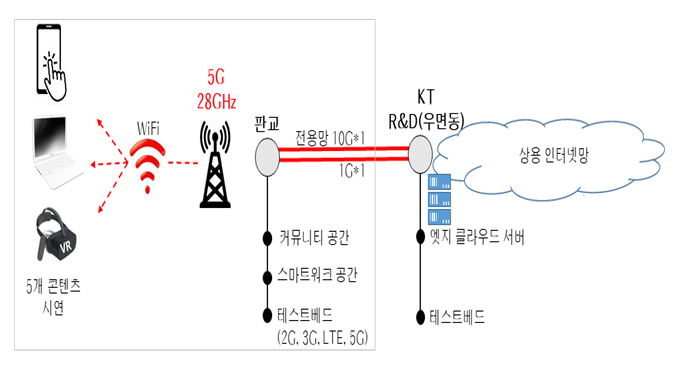 무선조종자동차(RC카) 실시간 원격(3km) 조종, 가상현실(VR) 기술을 활용한 아이돌 그룹 팬미팅, 360도 촬영 기술로 구현한 가상 여행 콘텐츠, 고화질 영상 송출을 통한 가상 박물관 관람 서비스와 실시간 체온·안면인식이 가능한 스피드게이트가 선보였다.