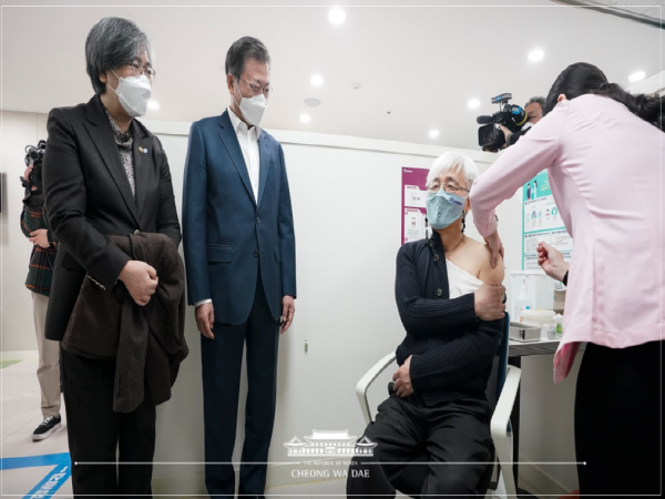 문재인 대통령은 오늘 오전 마포구 보건소 코로나19 예방접종실을 찾아 코로나19 예방접종 준비·시행상황을 점검했다.