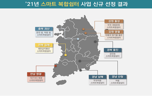 ‘20년`첫 시범사업을 실시, 부안군·고흥군·하동군·인제군·옥천군 등 5개소를 선정하여 오는 연말 준공을 목표로 공사하고 있으며, 올해에는 사업을 확대하여 전국 8개소를 선정하였다.