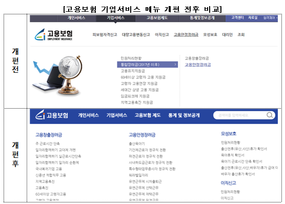 또한, 사업주가 원하는 기업서비스 신청 메뉴를 좀 더 쉽게 찾을 수 있도록 사용자환경(User Interface)을 전면 개편했다.