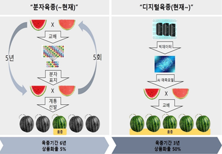 본 사업을 통해 국내 종자업체들은 다양한 농생명 빅데이터 분석 및 AI 기술을 활용하여 육종기간을 6년에서 3년으로 단축하고, 육성품종의 상품화율을 5%에서 50%까지 향상시킬 수 있을 것으로 기대된다.