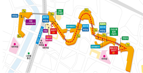 입장할 때에도 관람 동선의 혼잡도를 낮추기 위해 사회적 거리두기(2m 이상)를 준수하여 순차적으로 진행하며, 관람방향도 일방향만 가능토록 조정한다.