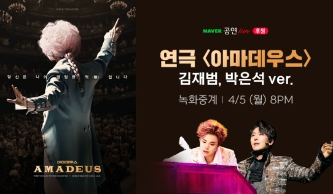 연극 '아마데우스' 녹화중계는 오는 4월 5일 오후 8시 네이버TV 후원 LIVE를 통해 스트리밍되며, 후원 LIVE 관람권은 3월 15일(월) 오후 2시부터 네이버TV ‘PAGE1’ 채널을 통해 판매될 예정이다.