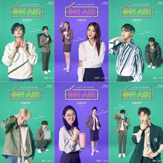 라이브 시트콤 ‘온에어-비밀계약’ 측은 19일 공식 SNS 등을 통해 슈퍼주니어 려욱, 산다라박, 이진혁, 빅톤 강승식, 골든차일드 주찬, 전예지 등 배우들의 모습이 담긴 화려하고 감각적인 포스터를 공개했다.