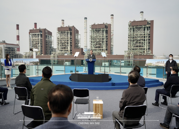 이후 대통령은 보령 1~8호기를 배경으로 서서 "오랫동안 대한민국의 산업화를 위해 희생했던 충남이 정부보다 먼저 탄소중립을 선언하고, 국제사회의 탈석탄, 기후변화 논의에 적극 동참했다"고 말했다.