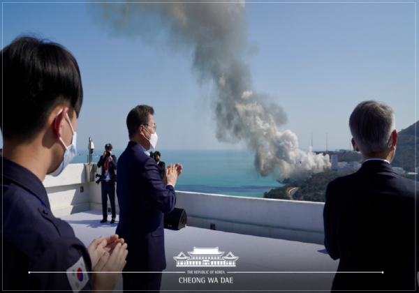 문재인 대통령은 한국형 우주발사체 ‘누리호’ 1단부 최종 종합연소시험 성공을 축하하며 "드디어 오는 10월 ‘누리호’는 더미 위성을 탑재하여 우주로 떠날 수 있게 됐다"고 말했다.