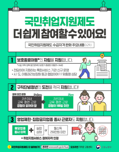 ·해당업종 종사 이력 + 실업상태 or 월소득 250만원 미만 = 취업지원서비스 참여자격 인정