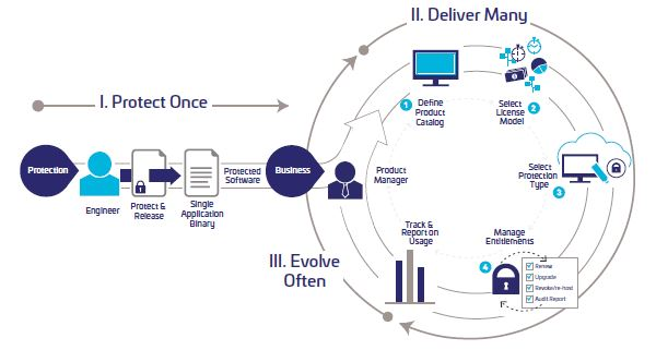 탈레스의 Sentinel LDK 솔루션은 exe, dll, python, so, jar, apk등 다양한 파일 형식의 바이너리를 암호화/난독화하는 Envelope과 라이선스 발급과 관리를 위한 EMS(Entitlement Management System)로 구성되어 있으며, 이를 통해 소프트웨어를 강력하게 보호하면서 동시에 시장이 요구하는 다양한 비즈니스 모델을 쉽고 빠르게 적용할 수 있다.